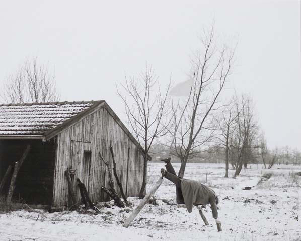 black-and-white barite photograph on cardboard, applied to base board with stamped