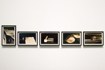 Der 16mm Film Untitled (The Pressure Behind Your Nail Colour My Dear), 2009 zeigt ein Ritual des Kräftemessens. Es ist der Handschlag zweier Frauenhände zum Armdrücken, wobei einer der beiden Oberarme tätowiert und die Fingernägel schwarz lackiert sind, während der andere Oberarm Druckstellen und um das Handgelenk geschlungene Perlenketten aufweist. Die ungleichen, im Kampf vereinten Schwestern messen ihre Kräfte über eine Minute unentschieden unter höchster Anspannung, die jedoch nur im leichten Beben der Hände sichtbar wird. Jenes emblematische Bild, das sich nur durch das leichte Wanken der Hände als Film verraten würde, wenn da nicht das beständige Knistern und Rattern des Filmprojektors wäre. Susanne M. Winterlings Gespür für die materielle Präsenz der Dinge lässt sie immer wieder zum Celluloid zurückkehren.